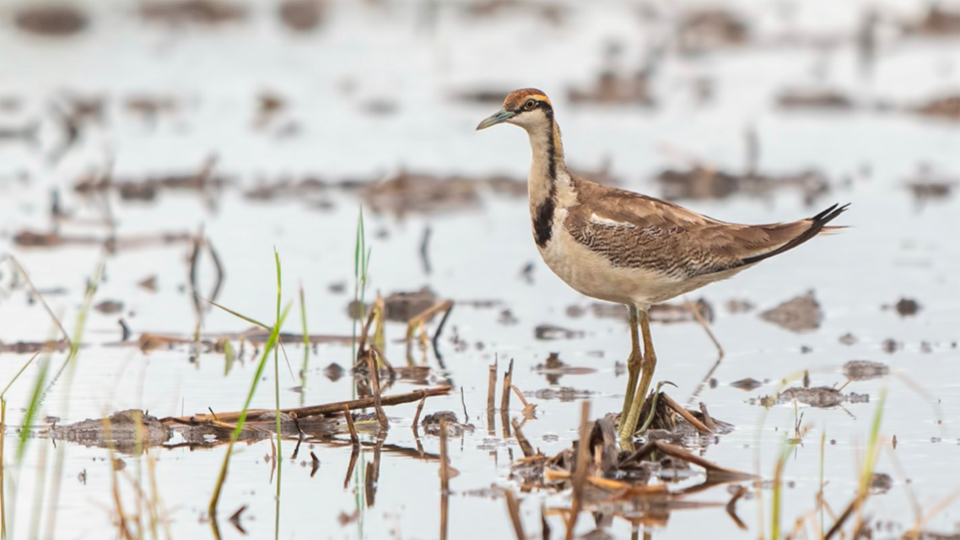 Jacanas are distinctive shorebirds known for their long toes and claws, which enable them to walk on floating vegetation. They are most often found in freshwater wetlands. Two species occur in Peninsular Malaysia; one in Bornean Malaysia. Both are migrants but also recent breeding colonists.