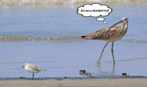 These very different-looking birds - Eurasian Curlew (right) and Sanderling (left) are both species of shorebird