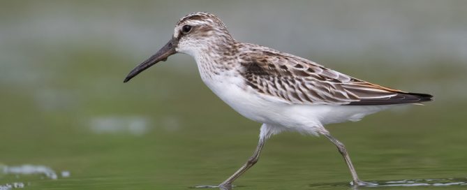 Small, short-legged, stint-like sandpiper with longish, thick bill which droops at the tip. Bold head pattern in all plumages.